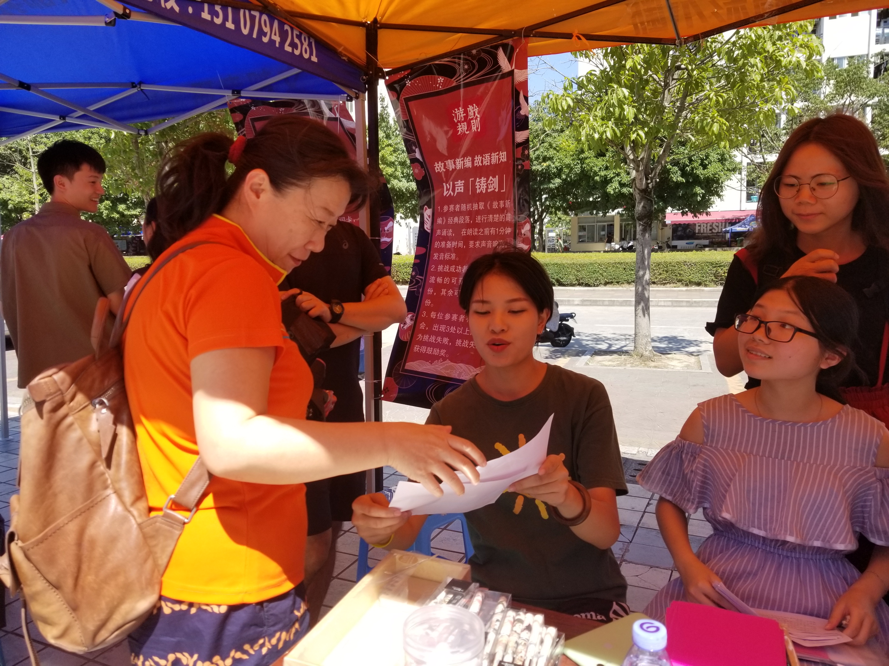 文洪老师、吕景芳老师也积极参加到本次活动中,为活动增添了不少乐趣。此外,19级新生对本次活动表现出极大的兴趣,穿着军训服装的新生一时在摊位前排起了长龙。19级汉语言文学专业的张振纬向记者表示,“这次活动让我感受到传统乡土文化的博大精深,各地方言十分有趣。推广普通话,可以增强民族凝聚力与国家的认同感,同时也可以提高现代人的交流能力。”